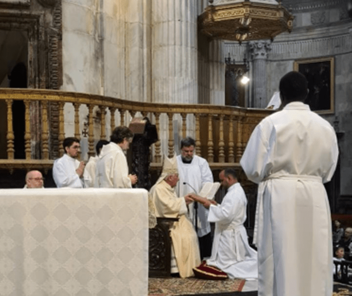 El domingo IV de Pascua, conocido como el «Domingo del Buen Pastor», tuvo lugar la ceremonia de entrega del ministerio del Lectorado a dos seminaristas, Francisco y George. La celebración se llevó a cabo en la catedral de Cádiz a las 12:00 horas y fue presidida por el Obispo de la diócesis, Mons. Rafael Zornoza Boy. Además de nuestros hermanos, algunos seminaristas del Seminario Conciliar de San Bartolomé también recibieron el ministerio del Acolitado.